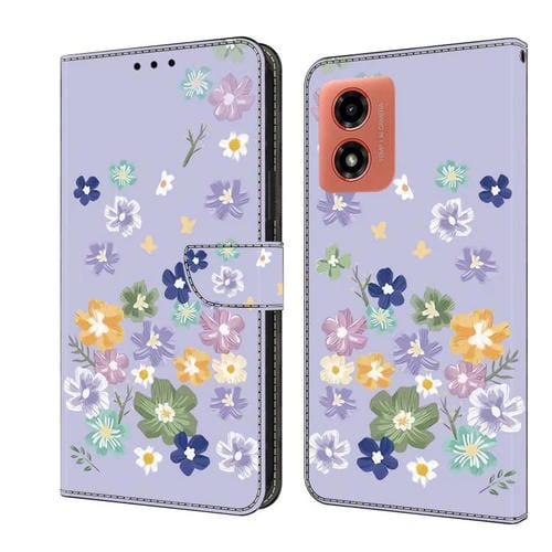 Funda de Cuero pintada a mano para Motorola Moto E14 (Floral Morado)