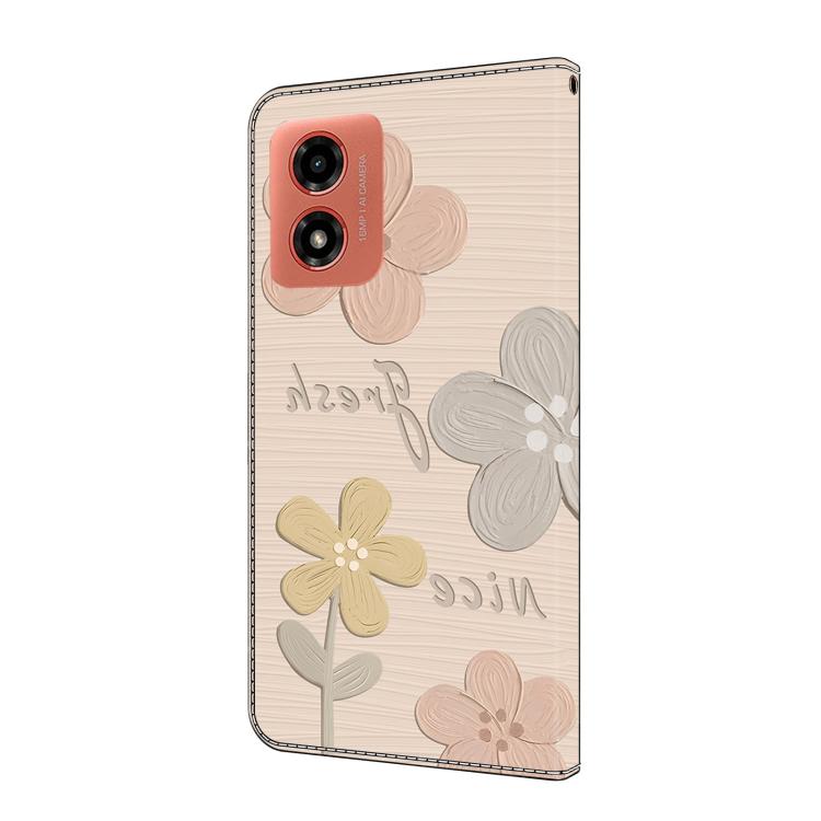Funda de Cuero Pintada a Mano para Motorola Moto E14 (Flores Beige)