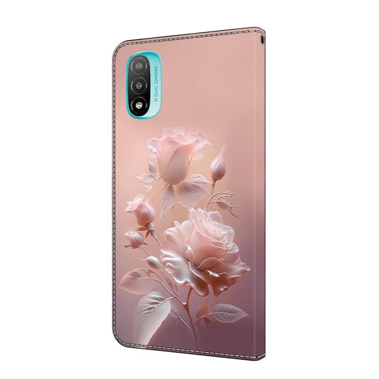 Funda de Cuero Pintada a Mano Motorola Moto E20 con Diseño Flores de Cerámica