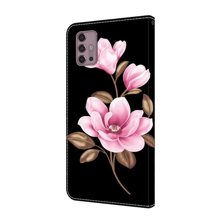 Funda de Cuero Pintada a Mano para Motorola Moto G30 (Flores Negras)
