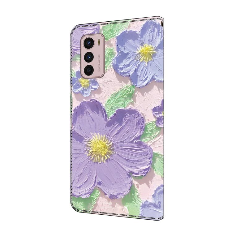 Funda de Cuero Pintada a Mano para Motorola Moto G42 (Flores Moradas)