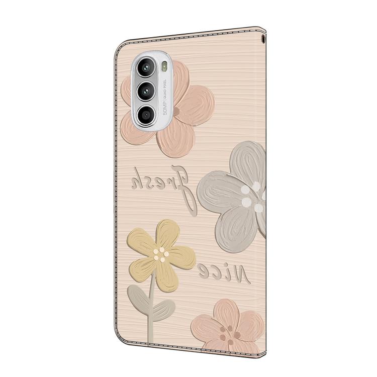 Funda de Cuero Pintada a Mano Motorola Moto G52 Protección (Flores Beige)