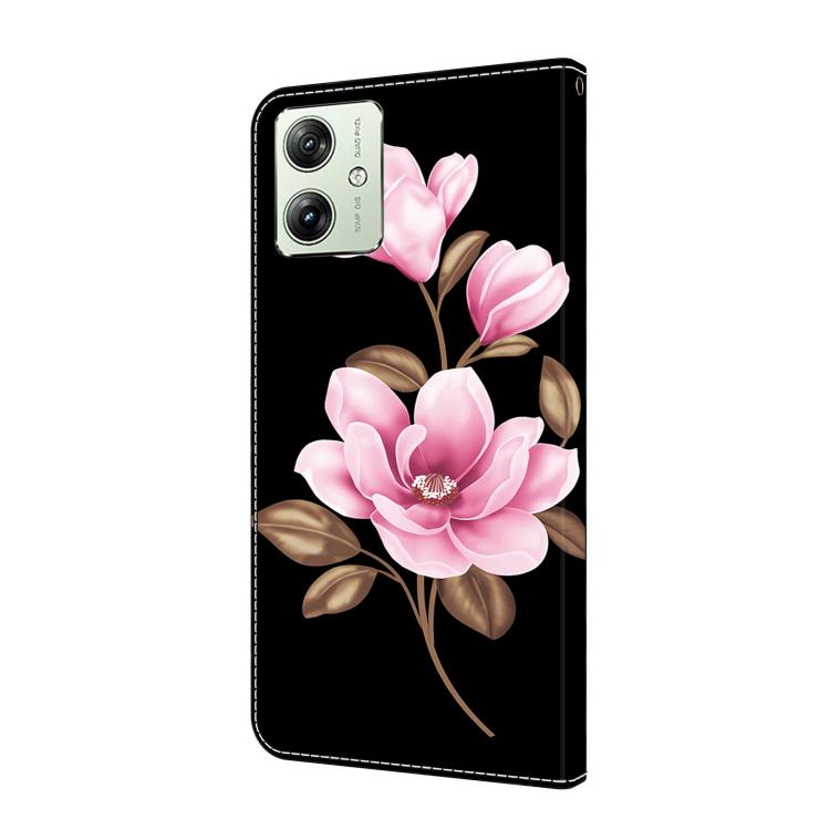 Funda de Cuero Pintada a Mano Motorola Moto G54 (Flores Negras)
