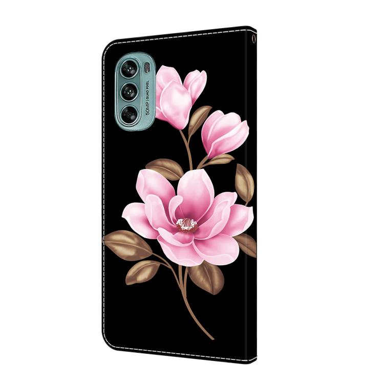 Funda de Cuero Pintada a Mano para Motorola Moto G62 5G (Flores Negras)