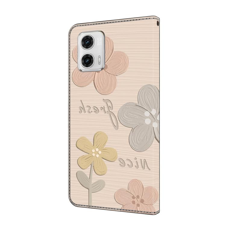 Funda de Cuero pintada a mano para Motorola Moto G73 (Flores Beige)