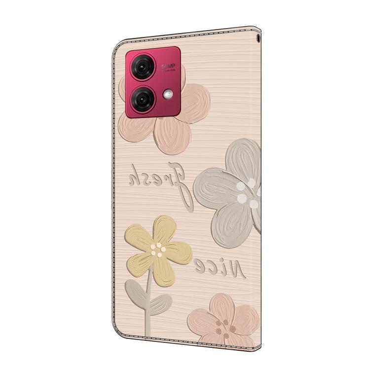 Funda de Cuero Pintada a Mano para Motorola Moto G84 (Flores Beige)