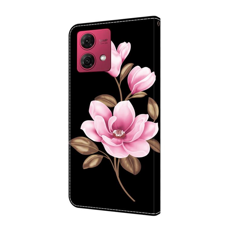 Funda de Cuero Pintada a Mano para Motorola Moto G84 (Flores Negras)