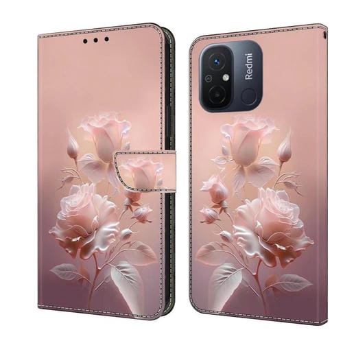 Funda de Cuero Pintada a Mano para Redmi 12C/11A (Flores de Cerámica)