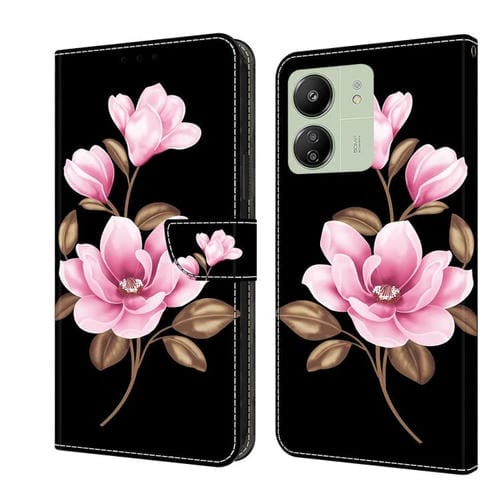 Funda de Cuero Pintada a Mano para Redmi 14C 4G (Flores Negras)