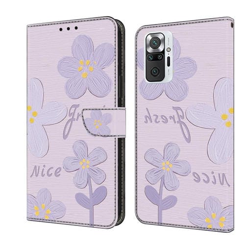 Funda de Cuero Pintada a Mano para Redmi Note 10 Pro 4G (Flores de Color Morado Oscuro)