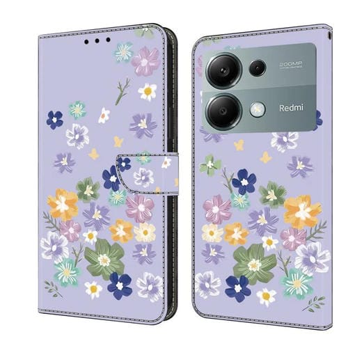 Funda de Cuero Pintada a Mano para Redmi Note 13 Pro 4G (Floral Morado)