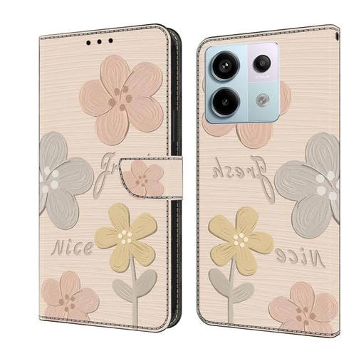 Funda de Cuero Pintada a Mano para Redmi Note 13 Pro 5G (Flores Beige)
