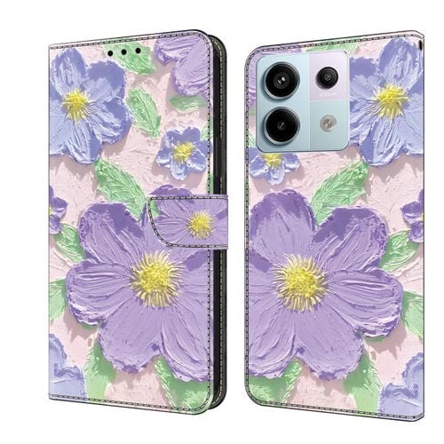 Funda de Cuero Pintada a Mano para Redmi Note 13 Pro 5G (Pintura al Óleo de Flores Moradas)