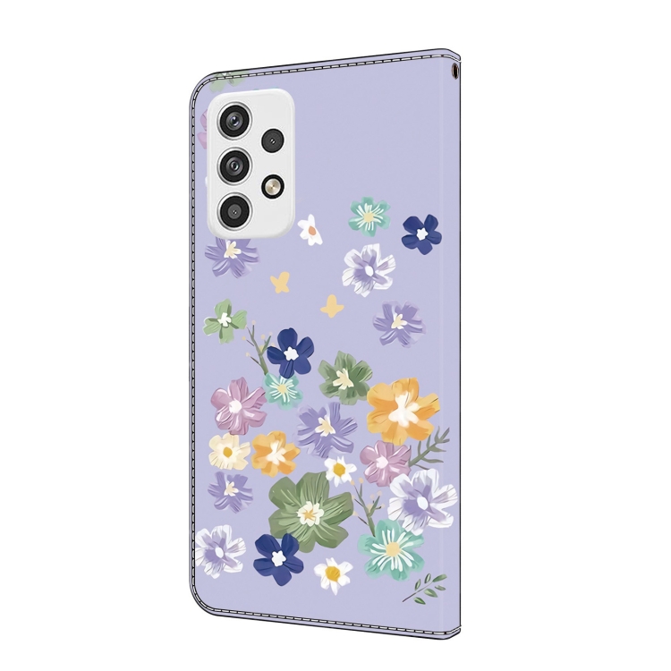 Funda de Cuero Samsung Galaxy A13 4G/5G Pintada a Mano Floral (Morado)