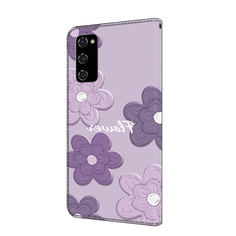Funda de Cuero Samsung Galaxy S20 FE Pintada a Mano Flores (Morado Oscuro)
