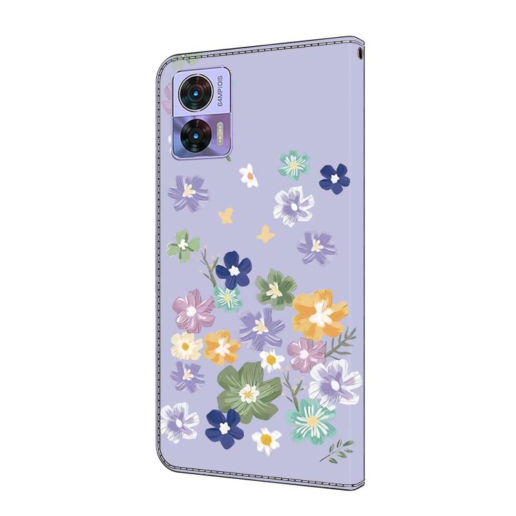 Funda de Cuero Pintada a Mano para Motorola Edge 30 Neo (Floral Morado)