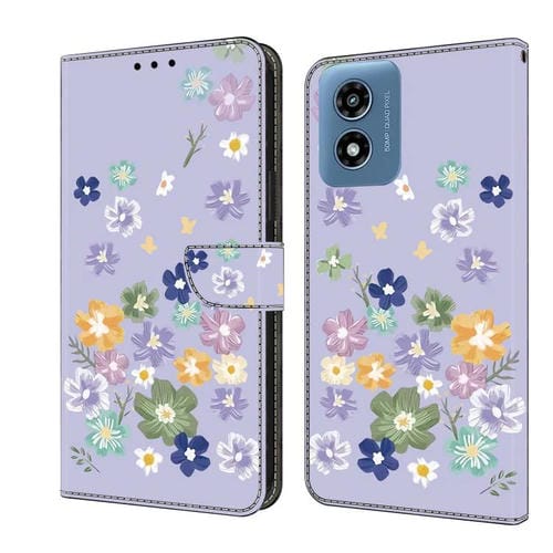 Funda de Cuero Pintada a Mano Motorola Moto G Play 2024 (Floral Morado)