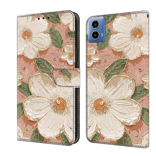 Funda de Cuero Pintada a Mano Motorola Moto G34 Protección (Girasol)