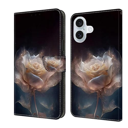 Funda de Cuero Pintada con Cristales para iPhone 16 Plus (Peonía)