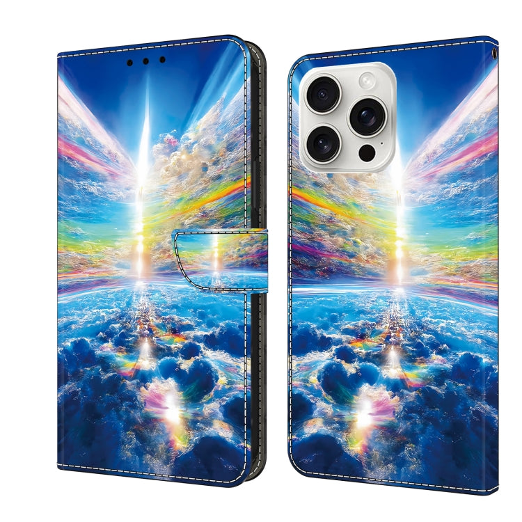Funda de Cuero para iPhone 16 Pro Max con Cristales Pintada (Cielo Colorido)