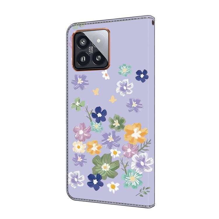 Funda De Cuero Pintada Fresca Para Teléfono Xiaomi 14 Pro (Floral Morado)