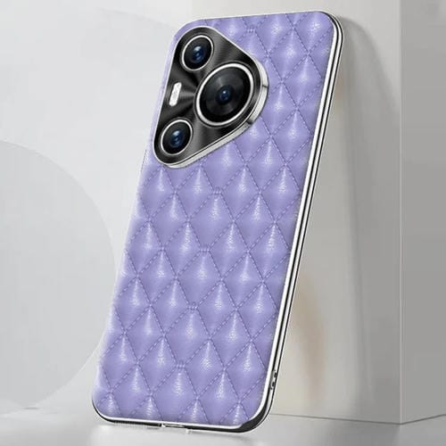 - 1x Funda de Cuero PU con Textura Rómbica y Borde Plateado para Huawei Pura 70 (Morado)