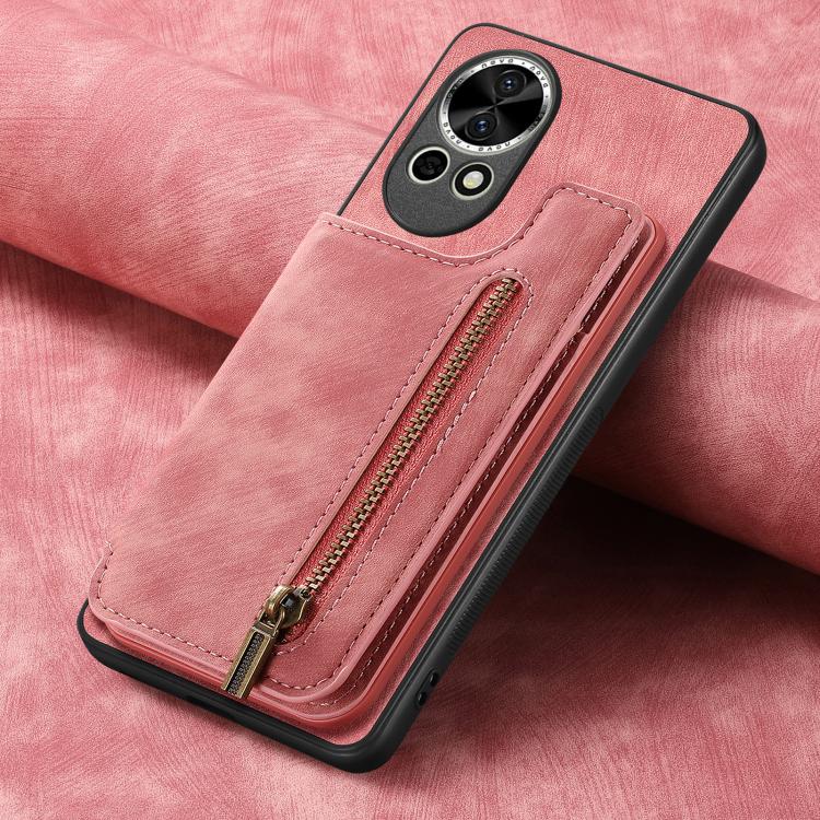 Funda de Cuero Retro con Cremallera para Huawei Nova 11 (Rosa)