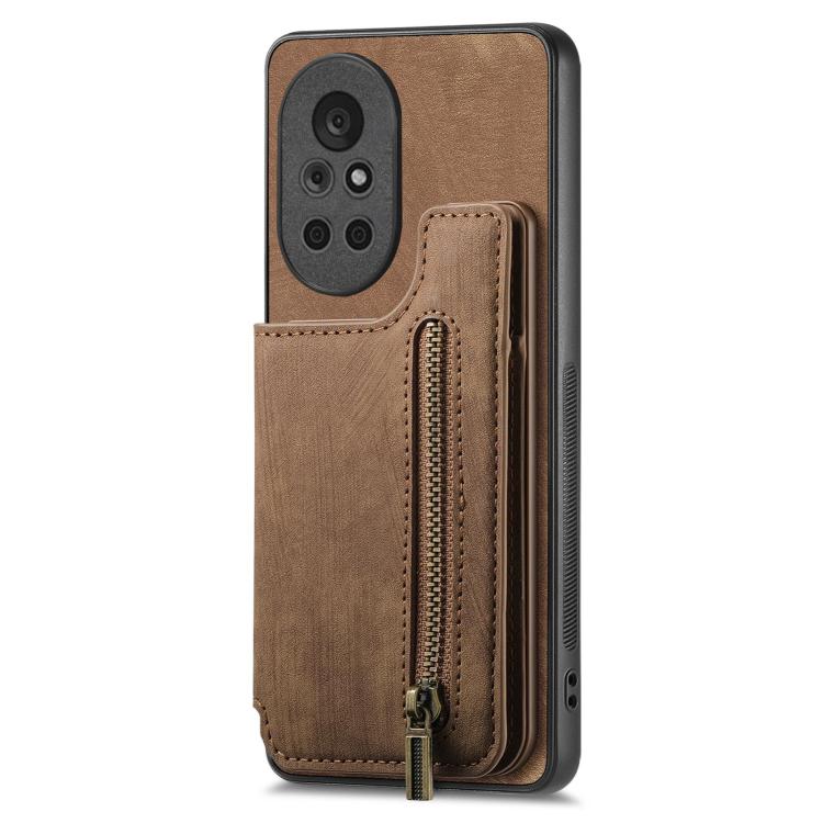 Funda de Cuero Retro con Cremallera para Huawei Nova 8 (Marrón)