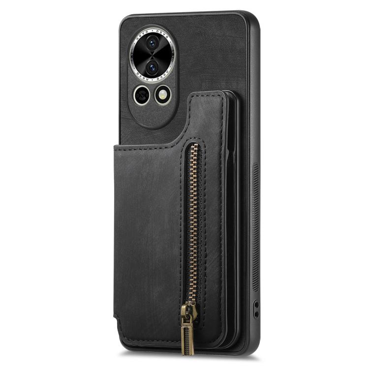 Funda de Cuero Retro con Cremallera para Huawei Nova 8 (Negra)