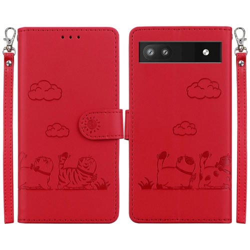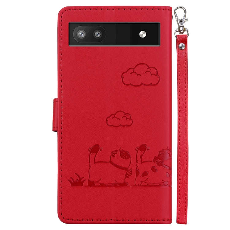 Funda de Cuero Rfid para Google Pixel 6A con Diseño de Gatos (Rojo)