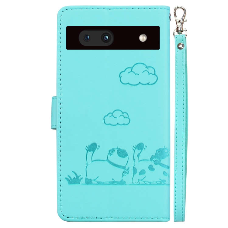 Funda de Cuero Rfid para Google Pixel 7A con Diseño de Gatos (Verde)