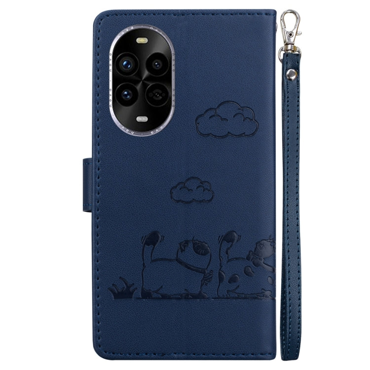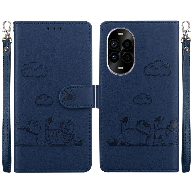 Funda de Cuero Rfid para Huawei Nova 13 Pro con Diseño de Gatos (Azul)