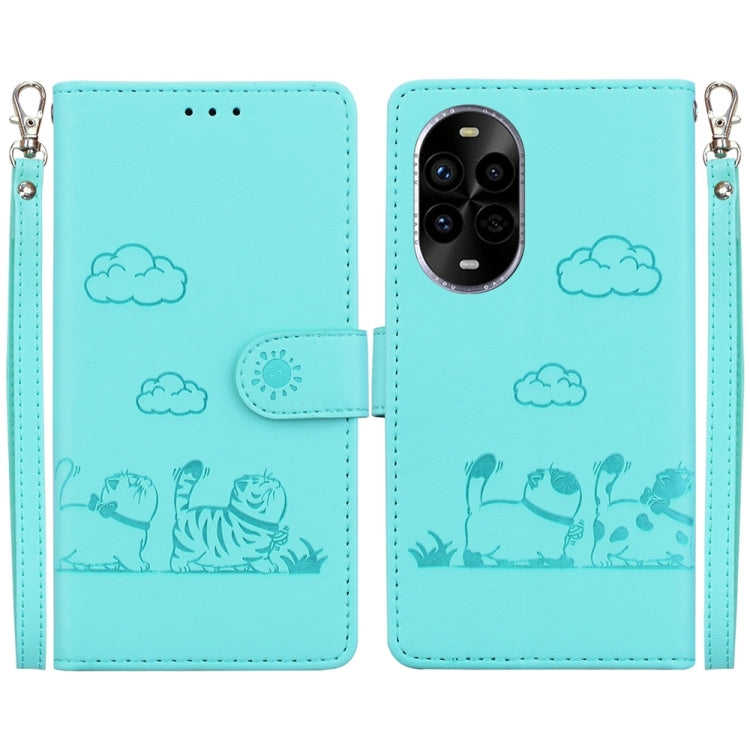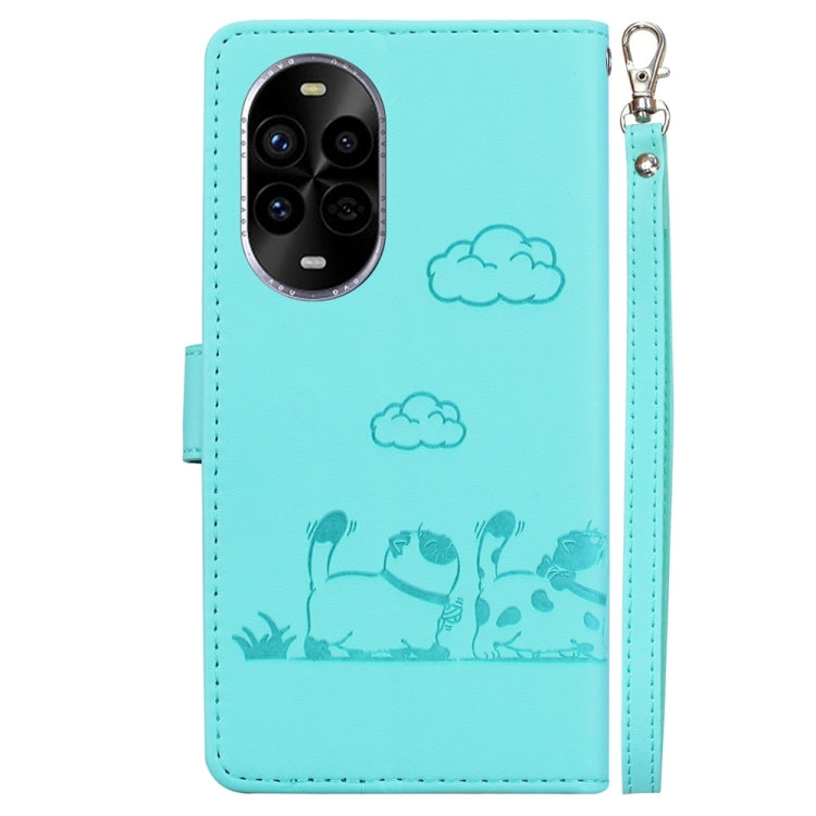 Funda de Cuero Rfid Huawei Nova 13 Pro con Diseño de Gatos (Verde)