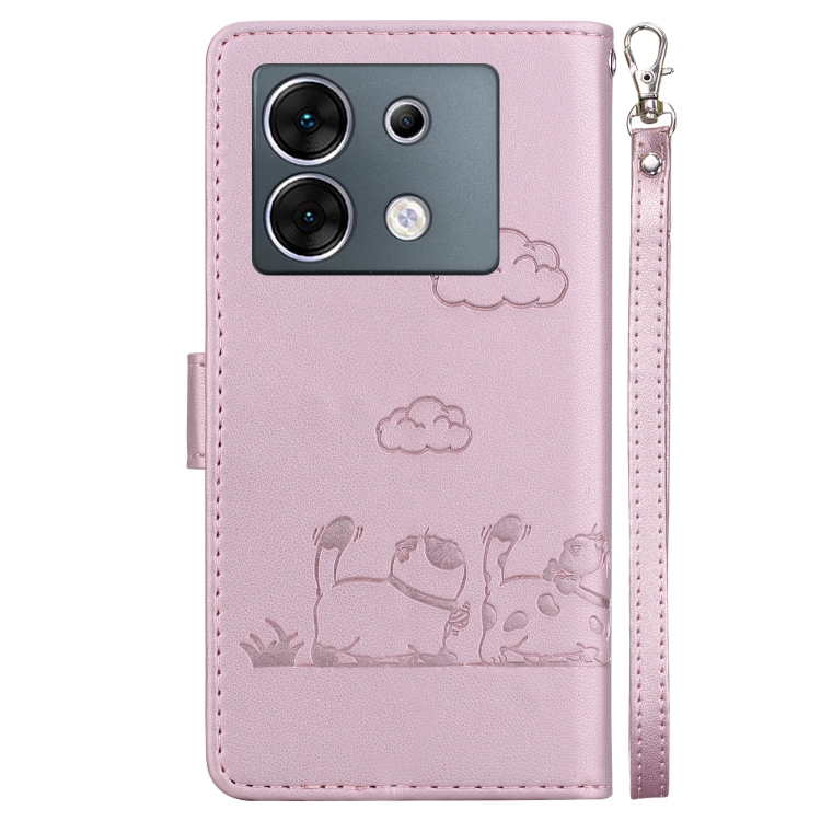 Funda de Cuero Rfid para Infinix Zero 30 5G con Diseño de Gatos (Oro Rosa)