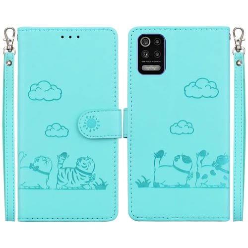 Funda de Cuero Rfid para LG K52/K62/Q52 con Diseño de Gatos (Verde)