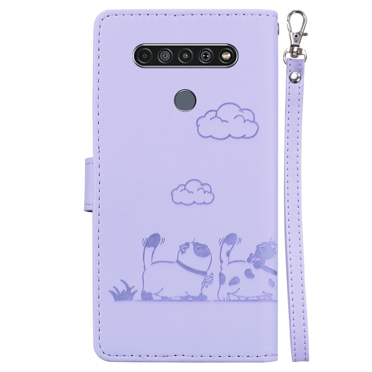 Funda de Cuero Rfid para LG K61 con Diseño de Gatos (Morado)