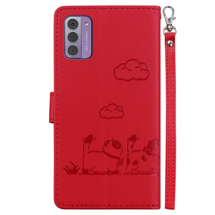 Funda de Cuero Rfid para Nokia G42 con Diseño de Gatos (Roja)