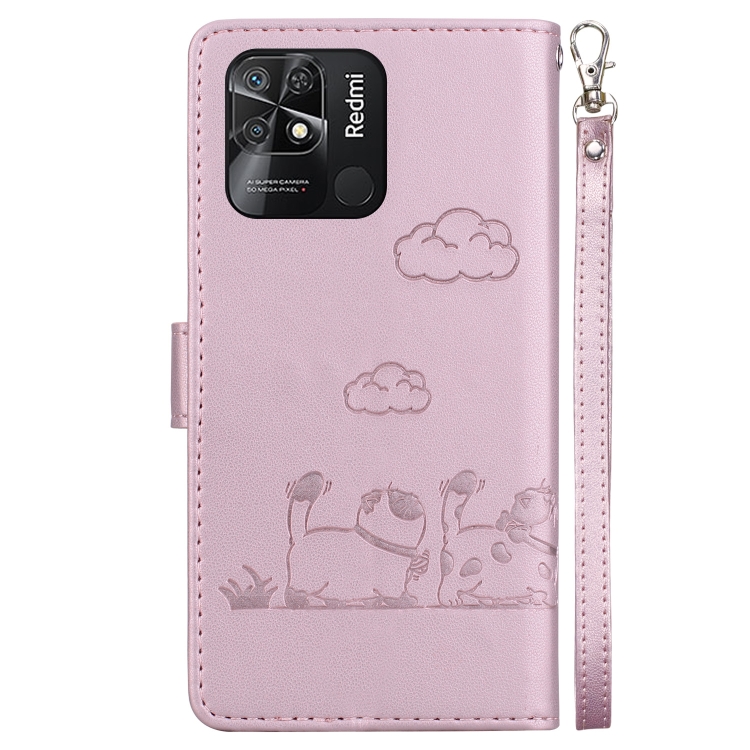 Funda de Cuero Rfid con Diseño de Gatos para Redmi 10C (Oro Rosa)