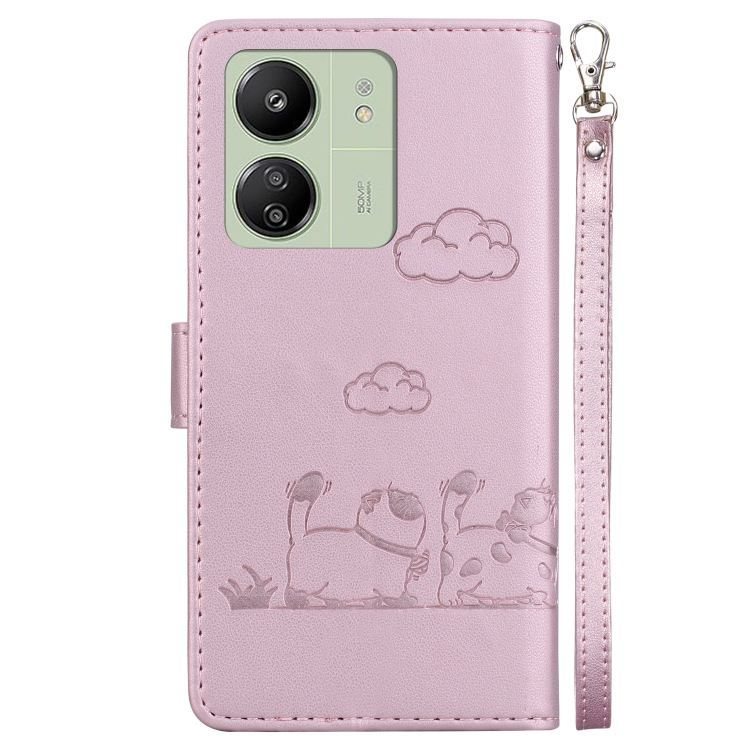 Funda de Cuero Rfid con Diseño de Gatos para Redmi 13C 4G/5G (Oro Rosa)