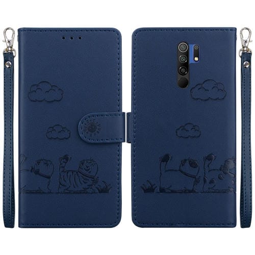 Funda de Cuero Rfid con Diseño de Gatos para Redmi 9/9 Prime (Azul)