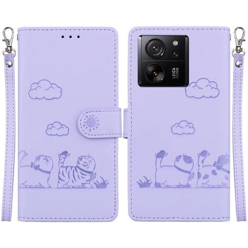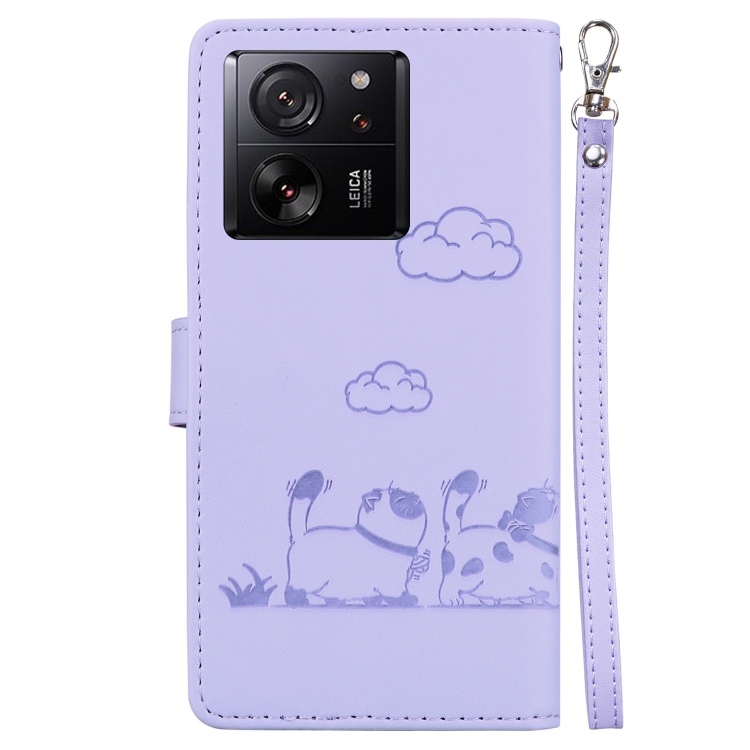 Funda de Cuero Rfid con Diseño de Gatos para Redmi K60 Ultra (Morado)