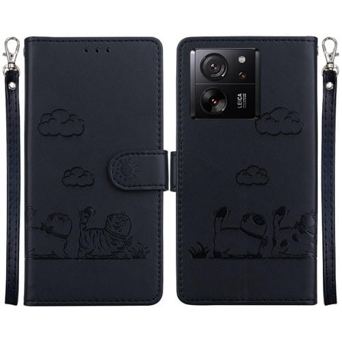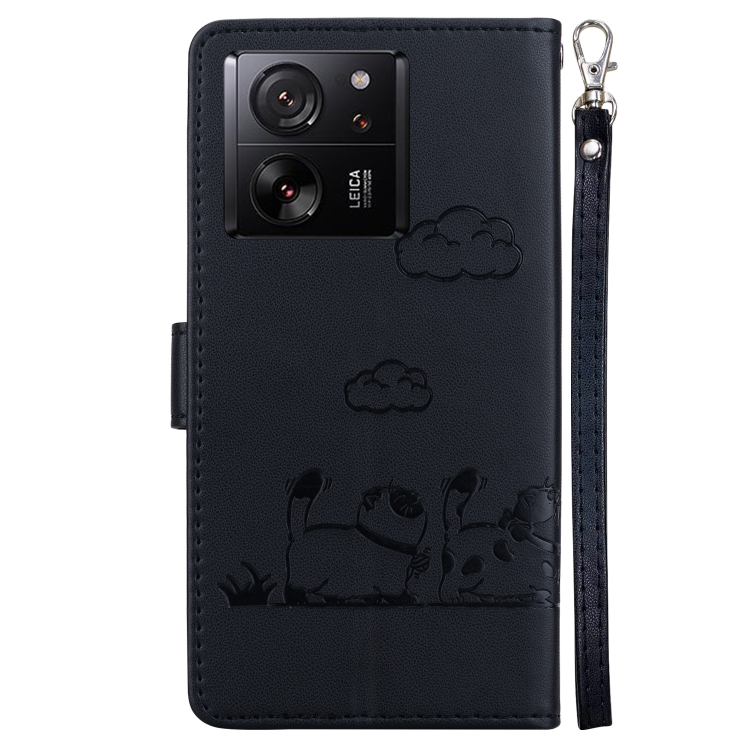 Funda de Cuero Rfid con Diseño de Gatos Lindos para Redmi K60 Ultra (Negra)