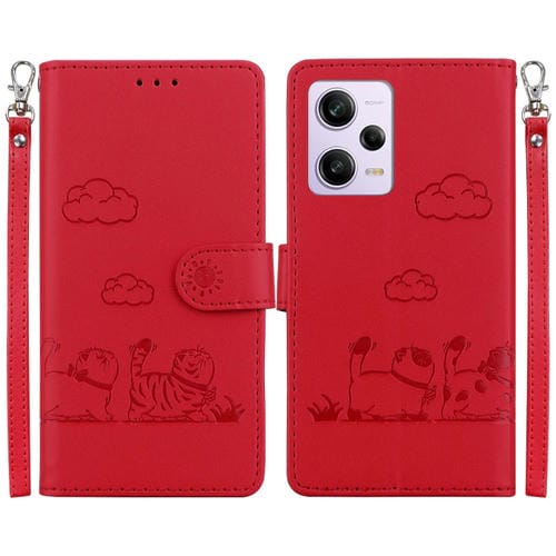 Funda de Cuero Rfid con Diseño de Gatos Lindos para Redmi Note 12 Pro 5G (Roja)