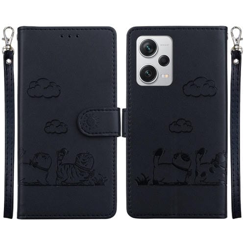 Funda de Cuero Rfid con Diseño de Gatos Lindos para Redmi Note 12 Pro+ (Negra)