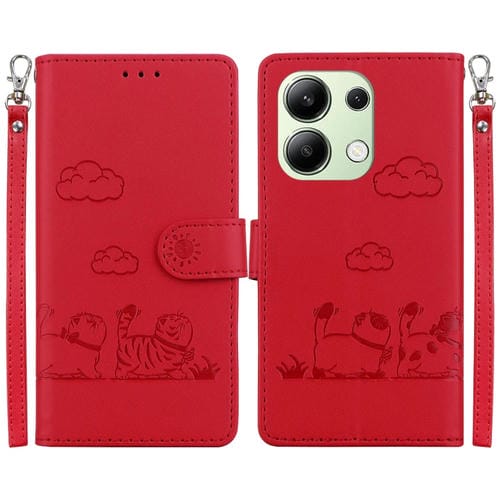 Funda de Cuero Rfid con Diseño de Gatos Lindos para Redmi Note 13 4G (Roja)