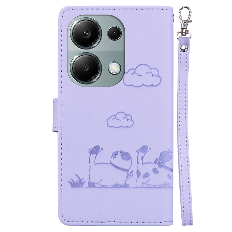 Funda de Cuero Rfid con Diseño de Gatos para Redmi Note 13 Pro 4G (Morada)