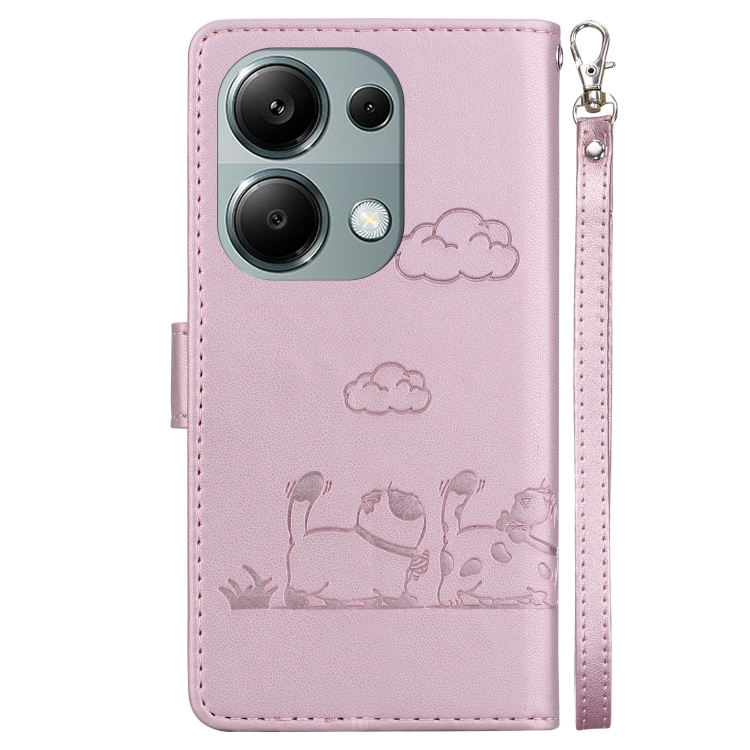 Funda de Cuero Rfid con Diseño de Gatos para Redmi Note 13 Pro 4G (Oro Rosa)
