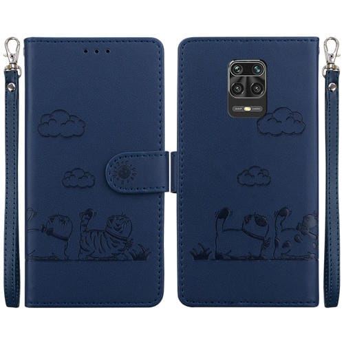 Funda de Cuero Rfid con Diseño de Gatos para Redmi Note 9 Pro (Azul)