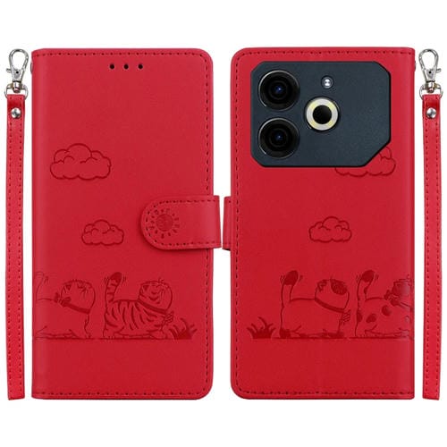 Funda de Cuero Rfid para Tecno Pova 6 Neo con Diseño de Gatos (Rojo)