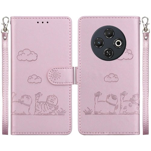 Funda de Cuero Rfid para Tecno Spark 30C con Diseño de Gatos (Oro Rosa)